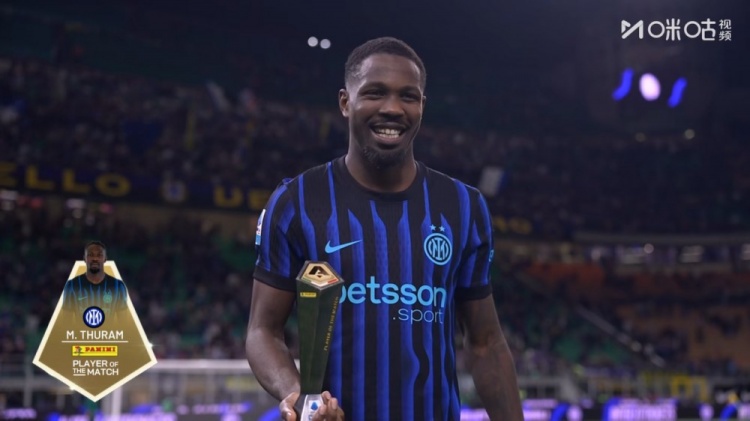 1射2传3关键传球,官方:马库斯·图拉姆当选国米5-2罗马全场最佳