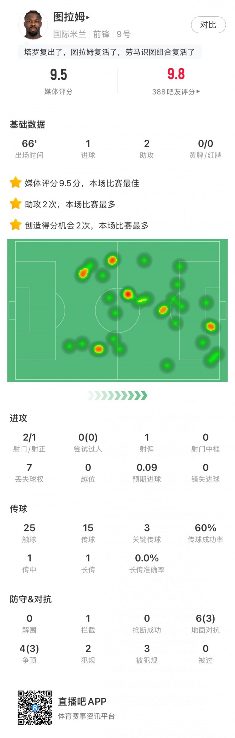 本场比赛国米前锋马库斯·图拉姆发挥出色,贡献1射2传,赛后他也被官方评选为本场比赛MVP。